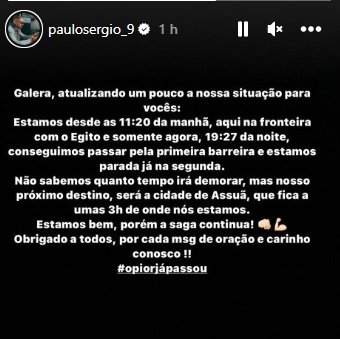 Pelo Instagram, o atacante Paulo Sérgio informou que todos estavam bem. Ele ainda contou que haviam passado da primeira barreira de controle na fronteira e que, apesar de não terem uma previsão, estavam a caminho de Assuã. Eles teriam ficado, aproximadamente, seis horas no bloqueio.