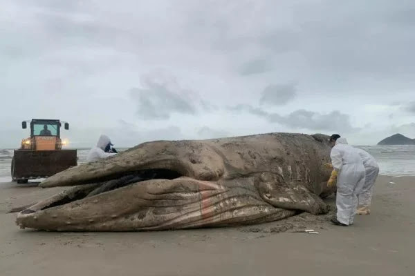 Biólogos e moradores do litoral de São Paulo encontraram uma baleia jubarte morta na praia na manhã desta quinta-feira (2/6). O corpo do animal, com cerca de 11 metros, foi movido para a faixa de areia da praia de Riviera de São Lourenço por profissionais do Instituto Gremar.