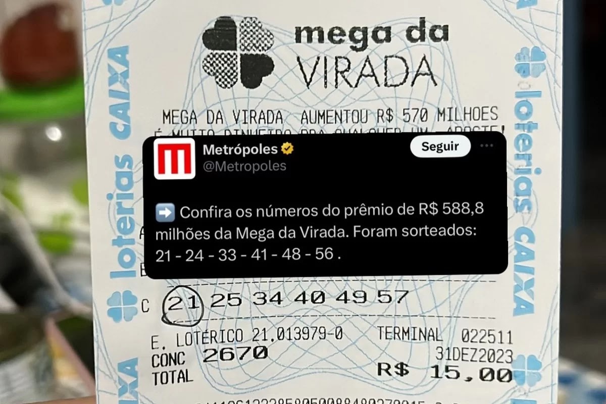 Um usuário do X (antigo Twitter) mostrou o bilhete “quase premiado” do pai para a Mega-Sena da Virada de 2023. Conforme ele publicou, a aposta chegou perto de acertar as seis dezenas — na prática, ele teria acertado apenas o 21.