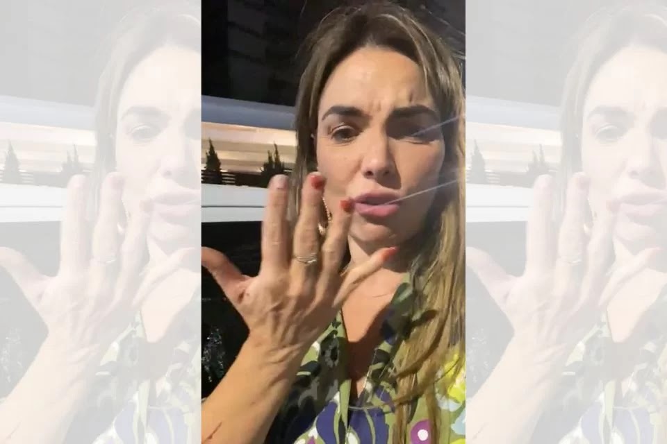 Assustada, Paula gravou um vídeo logo após o crime e mostrou o estrago na janela do veículo e os ferimentos com os estilhaços: “Eu estou toda machucada”.