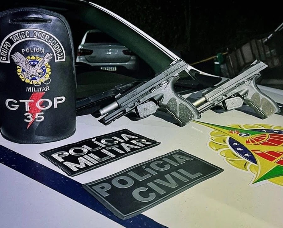 Os policiais foram até a casa indicada no conjunto 8. Os moradores apresentavam sinais de embriagues e não colaboravam com os policiais. Durante uma busca na residência, as equipes encontraram uma pistola 9mm, com 11 munições, dentro da máquina de lavar e uma pistola .380, com 10 munições, dentro do micro-ondas.