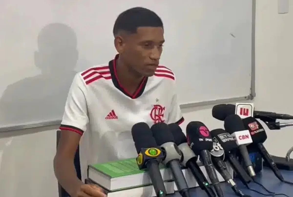 O torcedor do Flamengo que se envolveu em uma briga com o vice-presidente Marcos Braz, na última terça-feira (19/9), concedeu uma entrevista coletiva nesta sexta (22/9). O entregador Leandro Campos deu sua versão sobre o incidente em um shopping na Barra da Tijuca, no Rio de Janeiro.