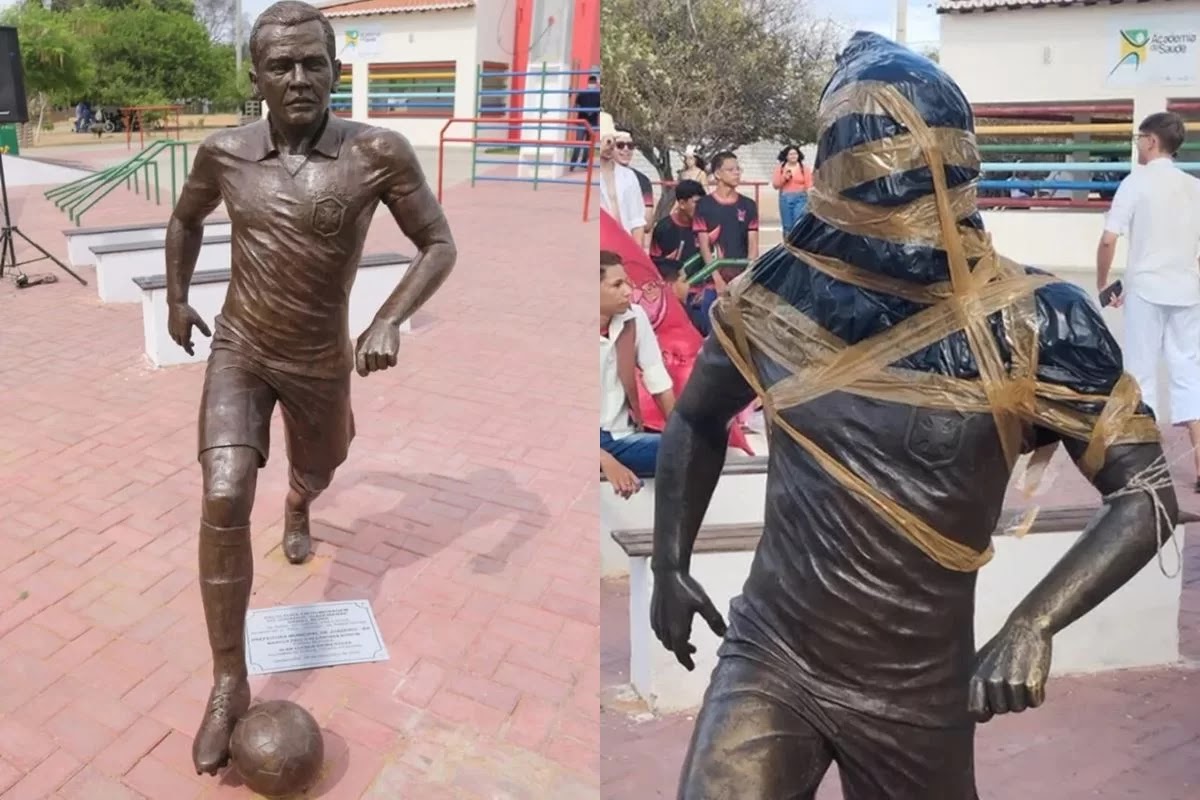 Daniel Alves, que é réu por agressão sexual na Espanha, teve estátua vandaliza em Juazeiro, na Bahia, nessa quinta-feira (7/9)