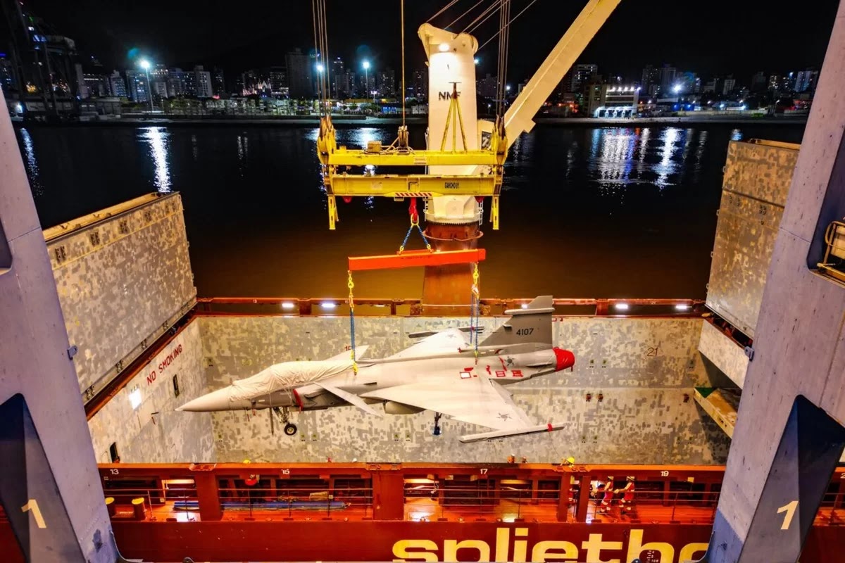 O avião saiu do porto de Norrkoping (cidade da província de Östergötland) a bordo do navio MV Florijngracht. O descarregamento ocorreu no Berço 2 do Portonave — terminal privado de contêineres em Santa Catarina.
