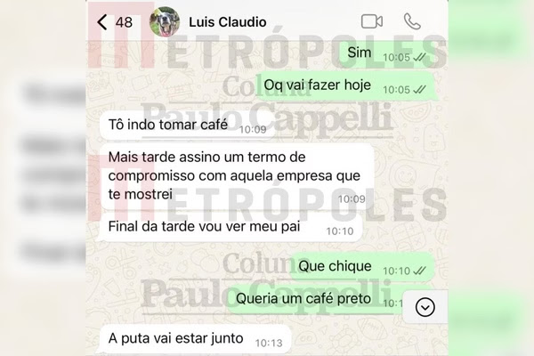 Na manhã do último dia 15 de setembro, em 2023, Natália perguntou a Luís Cláudio, às 10h05: “O que vai fazer hoje?”. Ele responde quatro minutos depois: “Tô indo tomar café. Mais tarde assino um termo de compromisso com aquela empresa que te mostrei. Final da tarde vou ver meu pai”.