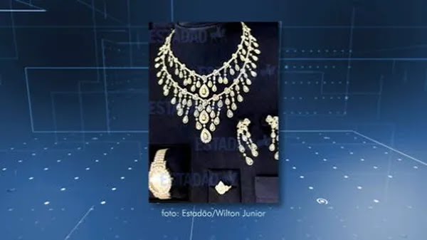O conjunto, segundo o jornal, tem: colar, anel, relógio e marca de brincos de diamantes. Também havia um certificado de autenticidade da marca Chopard.