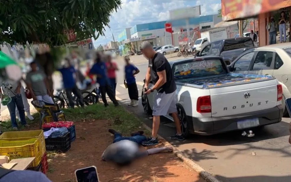 Um homem foi morto a tiros, na tarde desta quinta-feira (31), ao tentar roubar um carro de um policial militar de folga, em Goiânia. Câmeras de segurança registraram quando o PM estava parado em um semáforo, foi abordado por uma dupla de moto e atirou contra os criminosos. Um deles fugiu, mas foi localizado e preso.