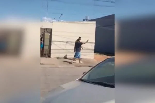 Briga de vizinhos termina em tiros nesse domingo (31/07) na QNM 8 da Ceilândia. De acordo com o Metrópoles o homem de camiseta preta e bermuda azul faz pelo menos dois disparos andando na direção de pessoas que estão ao lado de um carrinho de bebê, nas imagens, não é possível identificar se há alguma criança no carrinho.