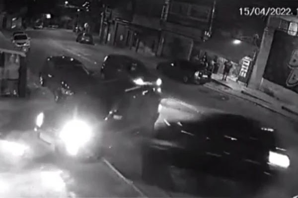 Câmera de monitoramento flagrou o momento em que o homem joga o carro contra o veículo da ex-mulher. Ela estava entrando na garagem de sua residência com seus três filhos, sendo dois do relacionamento com o agressor, quando foi surpreendida com o impacto da batida.