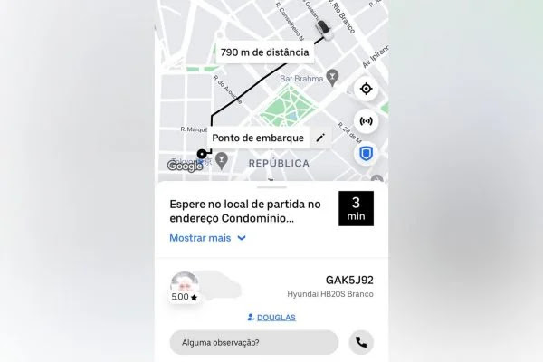 Larissa afirmou que nesse momento já estranhou a atitude do motorista. Ela então reparou que não havia o número de corridas que ele já tinha feito. A mulher então tirou um print da tela do aplicativo e enviou para a amiga.