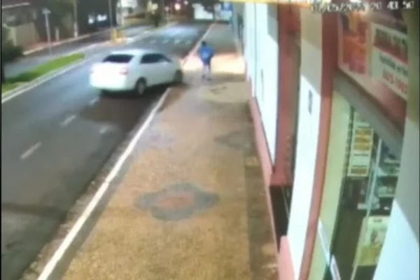 O vídeo mostra o momento em que o carro se aproxima e sobe na calçada para atropelar o suspeito, vestido de azul. Em seguida, o carro deixa o local, com a parte da frente da lataria bastante amassada. Confira o vídeo no metrópoles.