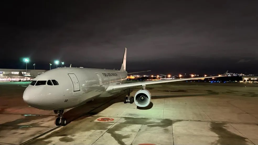 A aeronave KC-30 decolou de Tel Aviv, Israel, por volta das 12h (horário de Brasília) de sábado (14) e pousou no Aeroporto Internacional do Rio de Janeiro à 1h45 de domingo, segundo a Força Aérea Brasileira (FAB). O voo também incluiu 16 animais de estimação dos brasileiros.