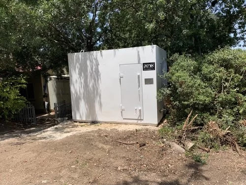 O lixo é cuidadosamente acondicionado em sacos de polietileno e, em seguida, colocado em contêineres herméticos a fim de conter odores. Para o saneamento, é usada uma fossa séptica ligada aos ralos das pias e ao vaso sanitário. Essa fossa, com capacidade de mil litros, fica em um nível mais baixo, a pelo menos 3 metros do bunker.