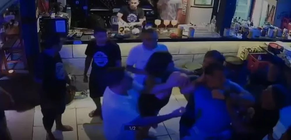As imagens mostram o PM próximo ao balcão, conversando um garçom. O agente aponta o dedo para rosto do trabalhador. Um outro funcionário reclama da forma como o agente fala e policial parte para cima dele. Depois, outros trabalhadores do restaurante aparecem, tentam retirar o PM do local, mas o homem reage e começa uma briga generalizada.