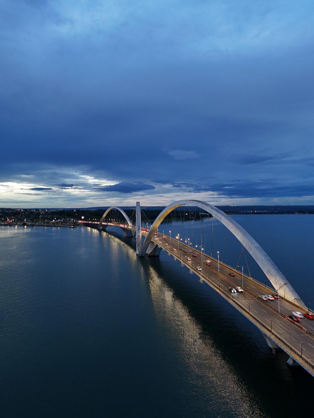 A primeira colocação ficou com o servidor Hayk Carvalho Silva, da Seec-DF, autor de uma imagem que retrata dois ícones de Brasília: a arquitetura imponente da ponte, com seus tirantes metálicos, e o Lago Paranoá, que, além de abastecer a cidade, ameniza os efeitos da seca. O contraste entre o azul da água e do céu realça a iluminação da estrutura, reforçando sua beleza.
