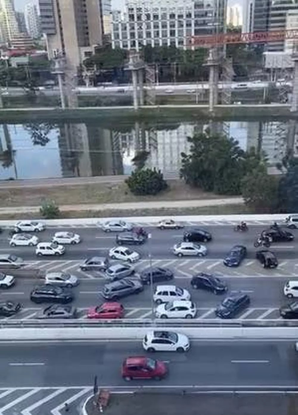 Motociclistas andaram na contramão da Marginal Pinheiros, no sentido Interlagos, entre as Pontes Transamérica e João Dias, na Zona Oeste de São Paulo, para evitar um suposto arrastão na tarde de domingo (1º).