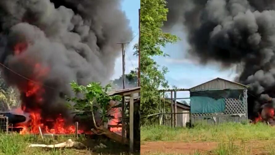 Um incêndio foi registrado no início da tarde de hoje (25), na comunidade Sol Nascente, em Itaituba. Os tanques que explodiram armazenavam combustível para maquinários e aeronaves usados na extração mineral.