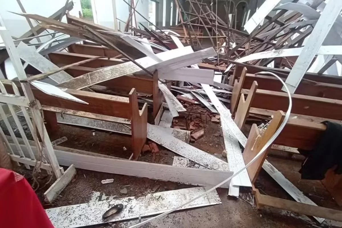 O teto desabou em uma das igrejas de Montezuma, no interior de Minas Gerais, na última quinta-feira (21/12)