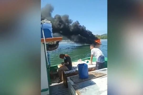 Vídeos feitos por outras embarcações mostram o barco em chamas. Em um dos registros, também é possível ver uma das vítimas do incidente com alguns ferimentos. Veja:
