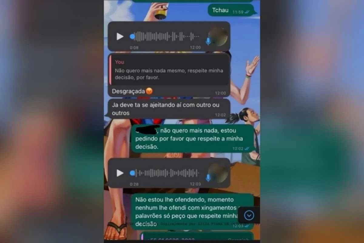 Nas mensagens, a estudante deixa claro não haver nada entre os dois e diz se sentir perseguida. Em resposta, o homem insiste: “Preciso só falar com você mais uma vez, por favor.” A jovem continua a pedir para o homem deixá-la em paz e ameaça registrar queixa na polícia. Inconformado, o servidor a pede para sair com ela mais uma vez. “Pode, por favor, sair comigo mais uma vez? Faço um Pix para te ajudar de R$ 100 agora”, insiste.