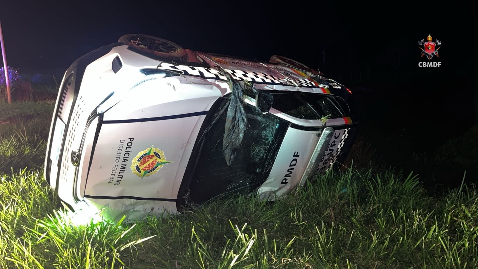 Uma viatura da Polícia Militar do DF capotou na madrugada desta quinta-feira (29) na Quadra 02 do Setor Hospitalar de Planaltina, provocando a mobilização de equipes do Corpo de Bombeiros Militar do DF para atendimento da ocorrência.