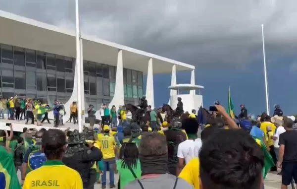 Por volta das 14h40, os extremistas invadiram o Congresso Nacional sob uma chuva de bombas de gás lacrimogênio. Em seguida, conseguiram passar pelas barricadas da Polícia Militar do Distrito Federal e entrar no Palácio do Planalto, sede da Presidência da República, e no Superior Tribunal Federal.