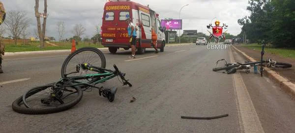 Dois ciclistas ficaram gravemente feridos após serem atropelados por um carro próximo à Ponte do Bragueto, na entrada do Lago Norte, às 7h15 deste domingo (2/4).